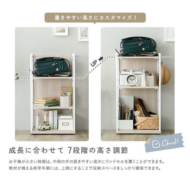 調節可能ランドセルワゴン FRRZ 幅45cm ランドセルラック コンパクト 頑丈設計 目隠し 可動棚 隠しキャスター付き