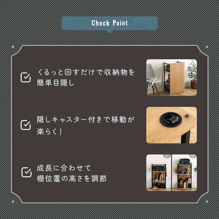 ヴィンテージ調 調節可能ランドセルワゴン VRRZ 幅45cm ランドセルラック コンパクト 頑丈設計 目隠し 可動棚 隠しキャスター付き