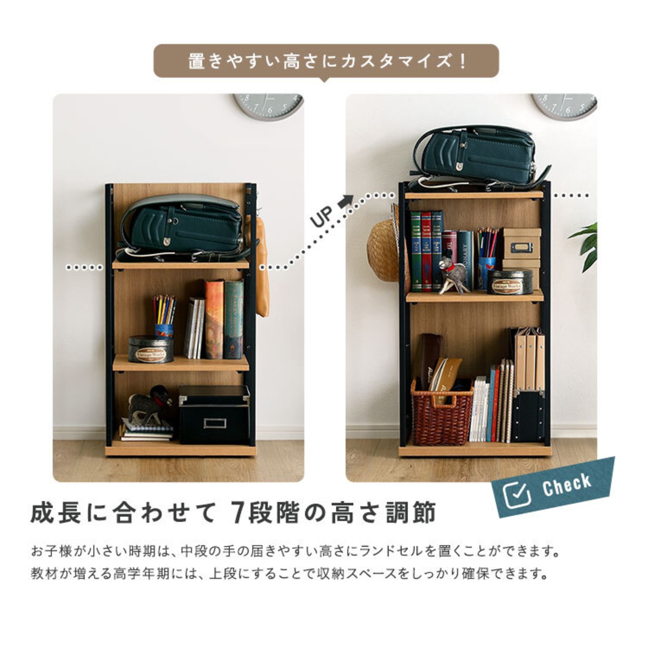 成長過程に合わせて、棚板の高さ調節が可能です!