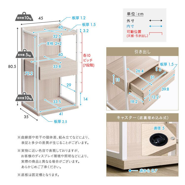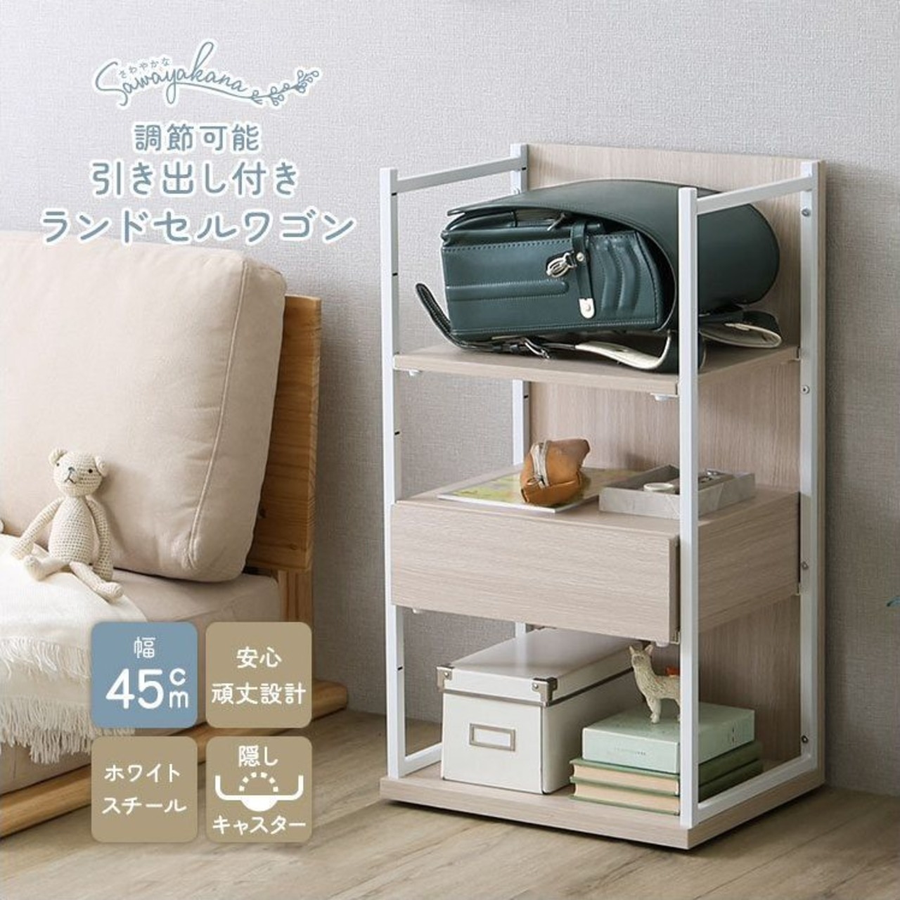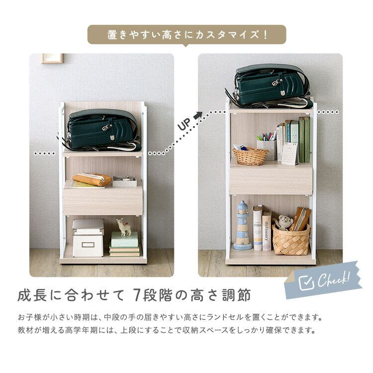 調節可能引き出し付きランドセルワゴン FRRZ-D 幅45cm ランドセルラック コンパクト 引き出し付き 頑丈設計 目隠し 可動棚 隠しキャスター付き