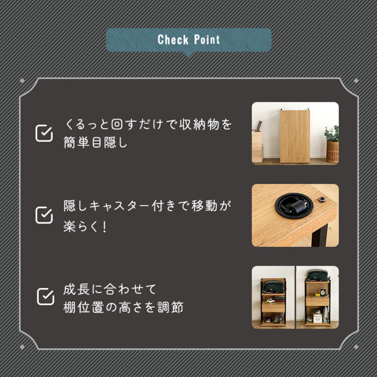くるっと回すだけで目隠しできる引き出し付きランドセルラックです!