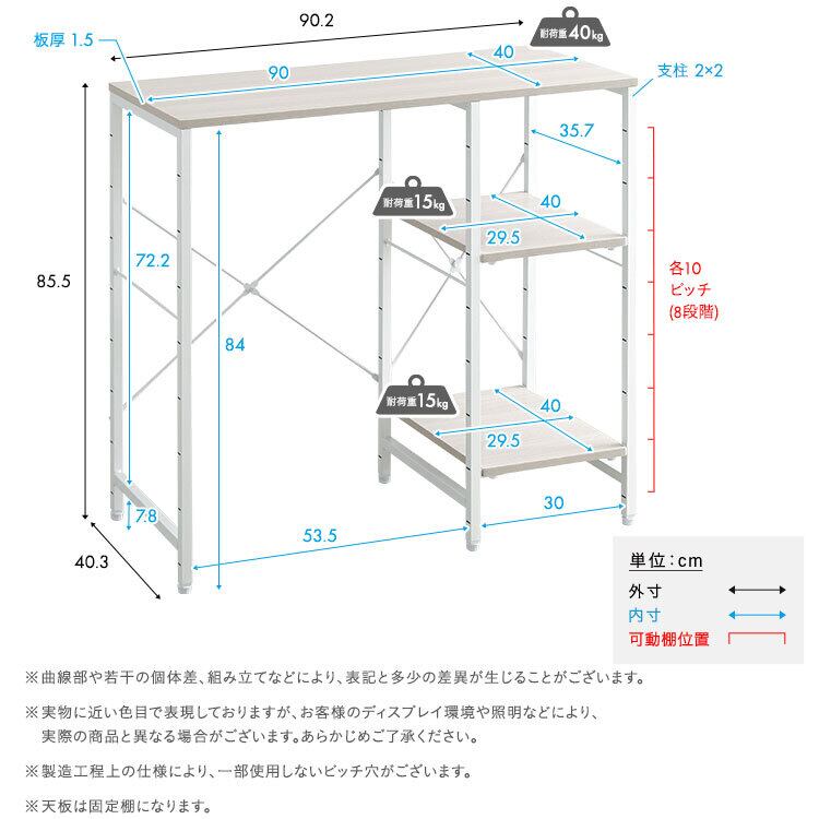 90cm幅の天板で電子レンジなどを置いてもさらに作業スペースがあります!