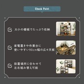 90cm幅の天板で電子レンジなどを置いてもさらに作業スペースがあります!
