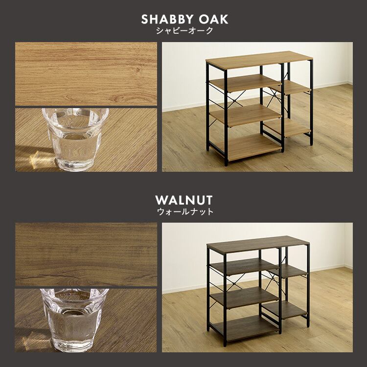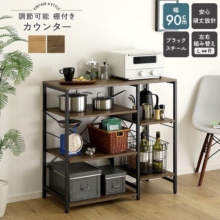 ヴィンテージ調 調節可能棚付き カウンター VKZ-90KC-T 幅90cm キッチンカウンター キッチンラック 作業台 作業スペース 左右組み替え 頑丈設計 PVC