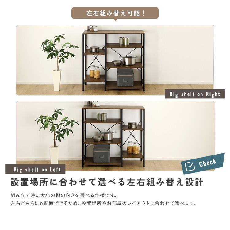 棚板調節可能で、お持ちのキッチン用品に合わせて変更できます!