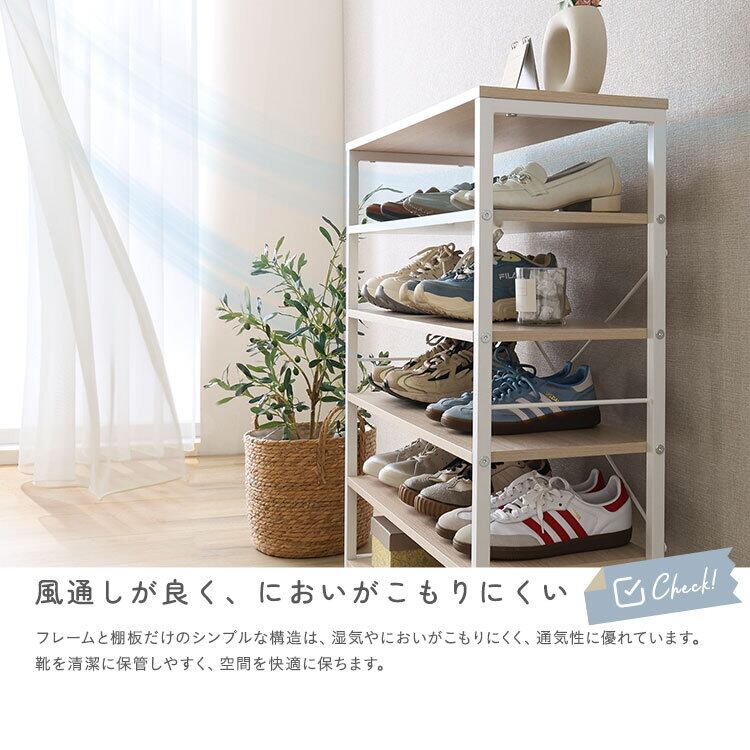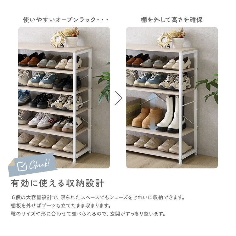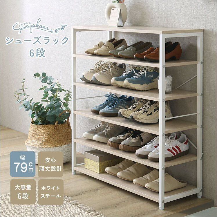 シューズラック6段 FSZ-6S 幅79cm オープンラック 棚板取り外し可能 頑丈設計 大容量6段 2トーン PVC アジャスター付き