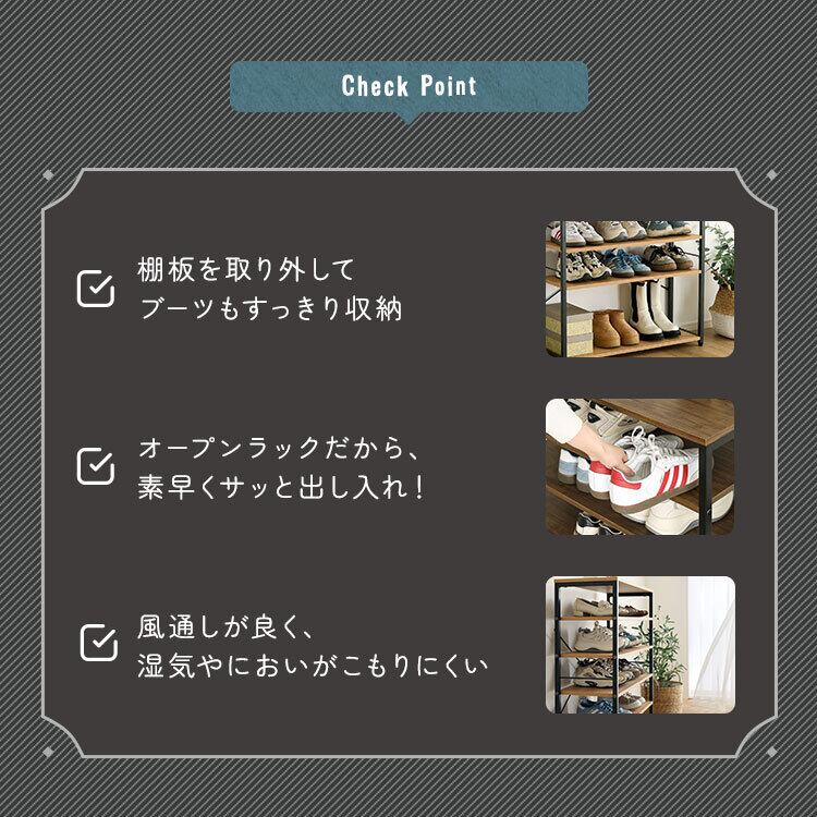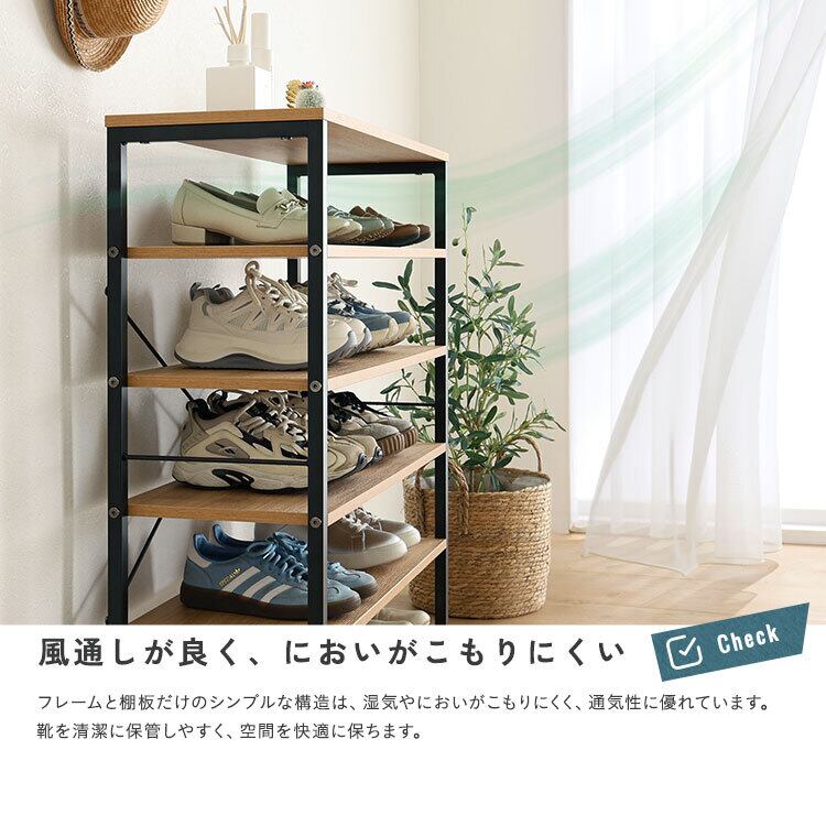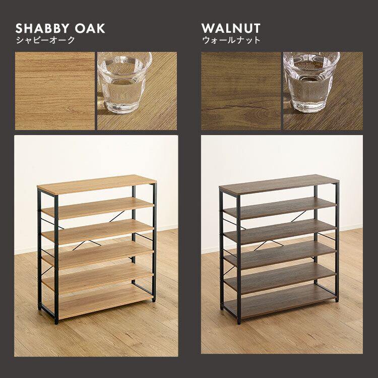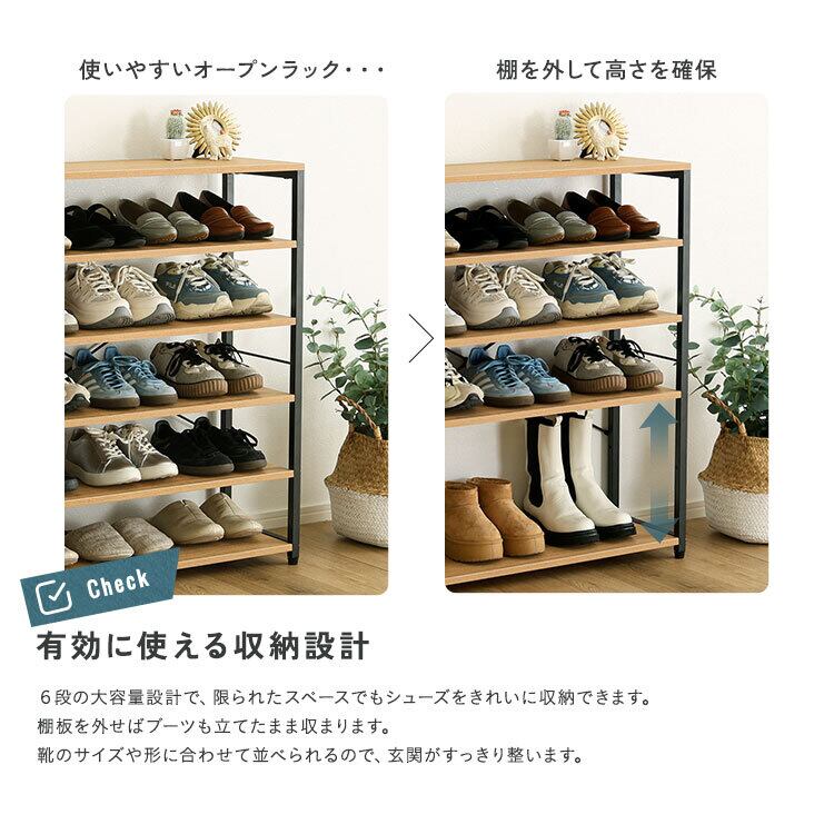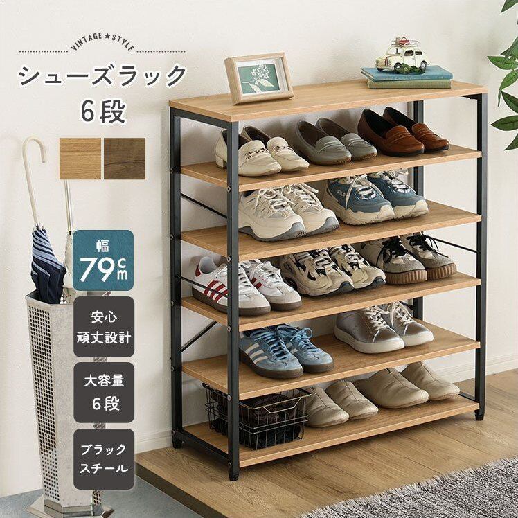 ヴィンテージ調 シューズラック6段 VSZ-6S 幅79cm オープンラック 棚板取り外し可能 頑丈設計 大容量6段 2トーン PVC アジャスター付き