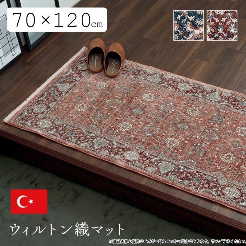トルコ製 ウィルトン織りマット アルスラーン 70×120cm カーペット 玄関マット クラシカル柄 肌触り柔らか 抗菌防臭消臭