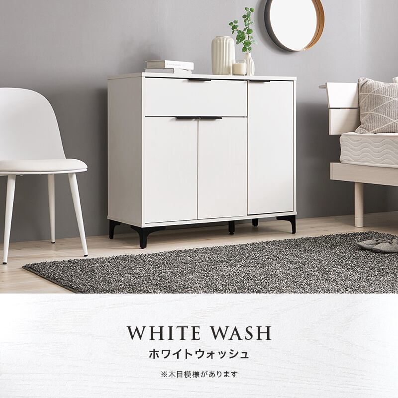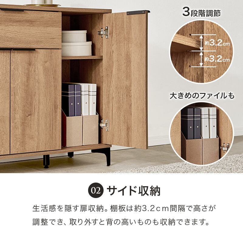木目調キャビネット RCC-1538 幅90cm 高さ82cm リビングキャビネット 隠して魅せる アイアン脚 扉収納 可動棚 引き出し収納 スライドレール 横揺れ防止
