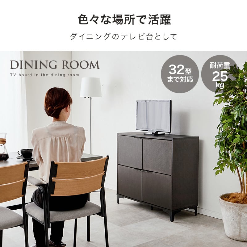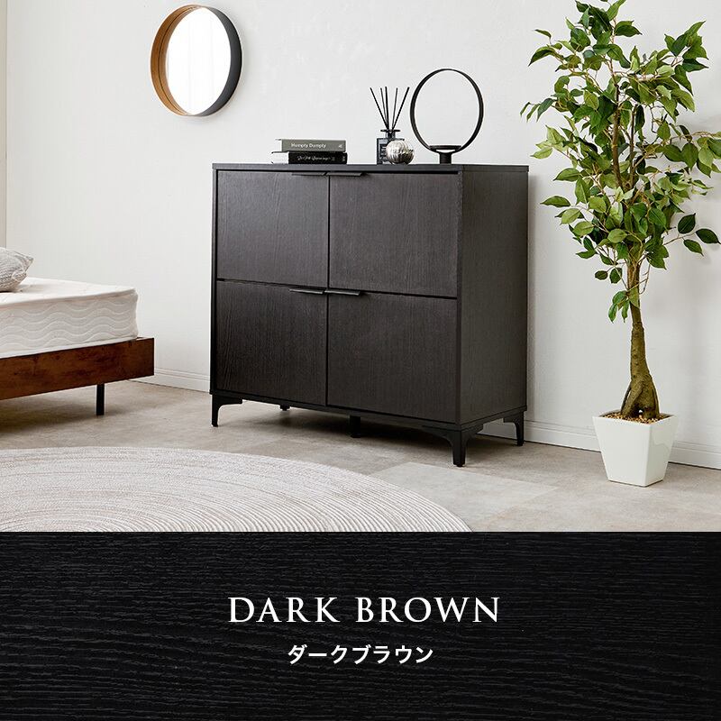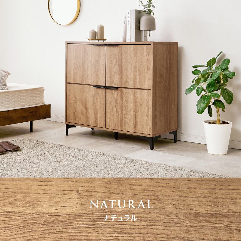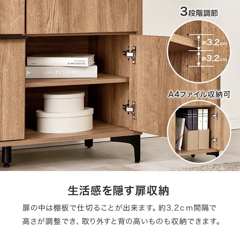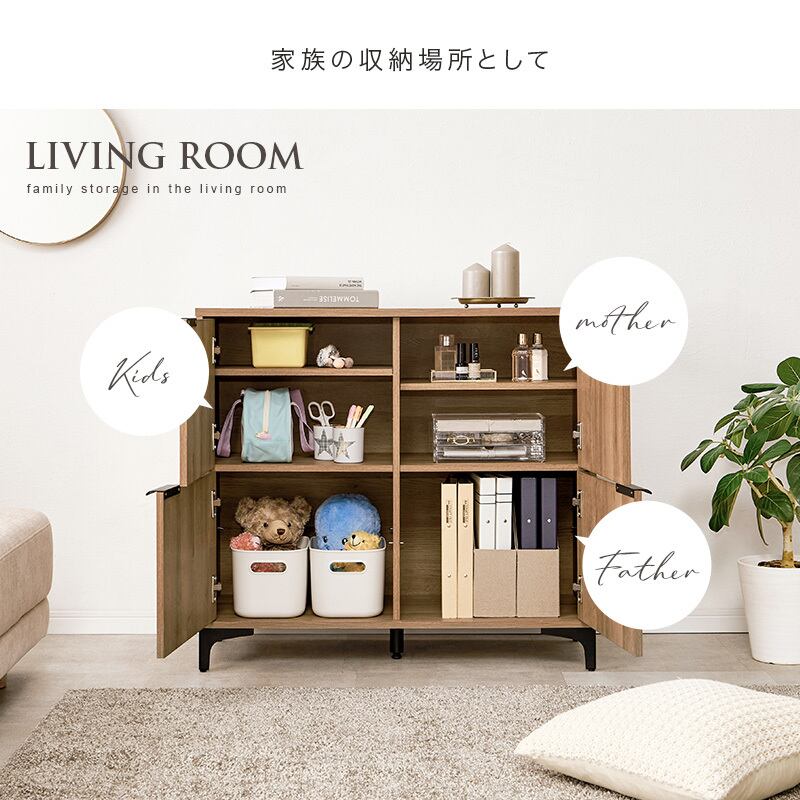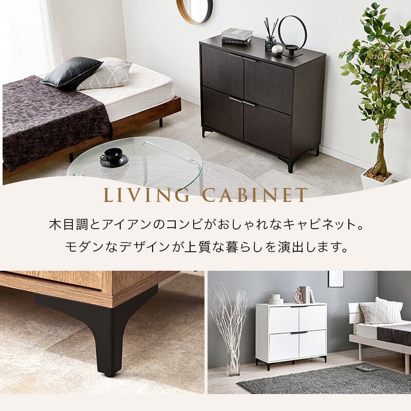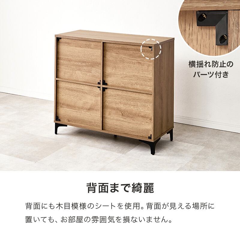 木目調キャビネット RCC-1578 幅90cm 高さ82cm リビングキャビネット 隠して魅せる アイアン脚 扉収納 可動棚 横揺れ防止