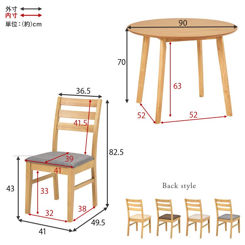 チェア:(約)幅41×奥行49.5×高さ82.5×座面高43cm