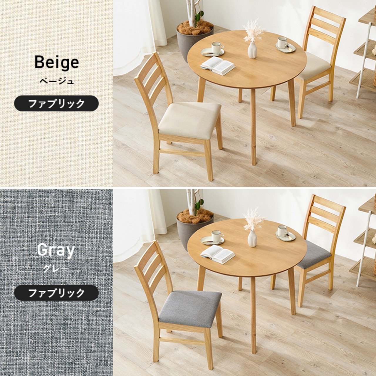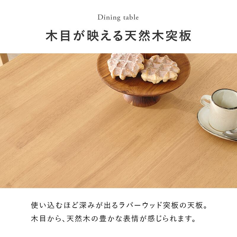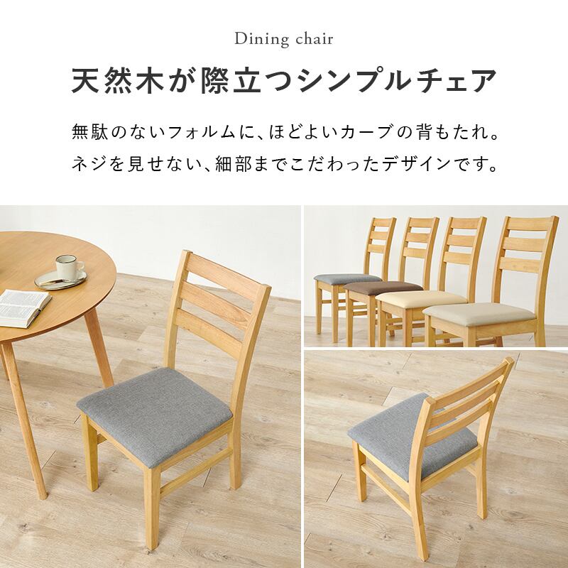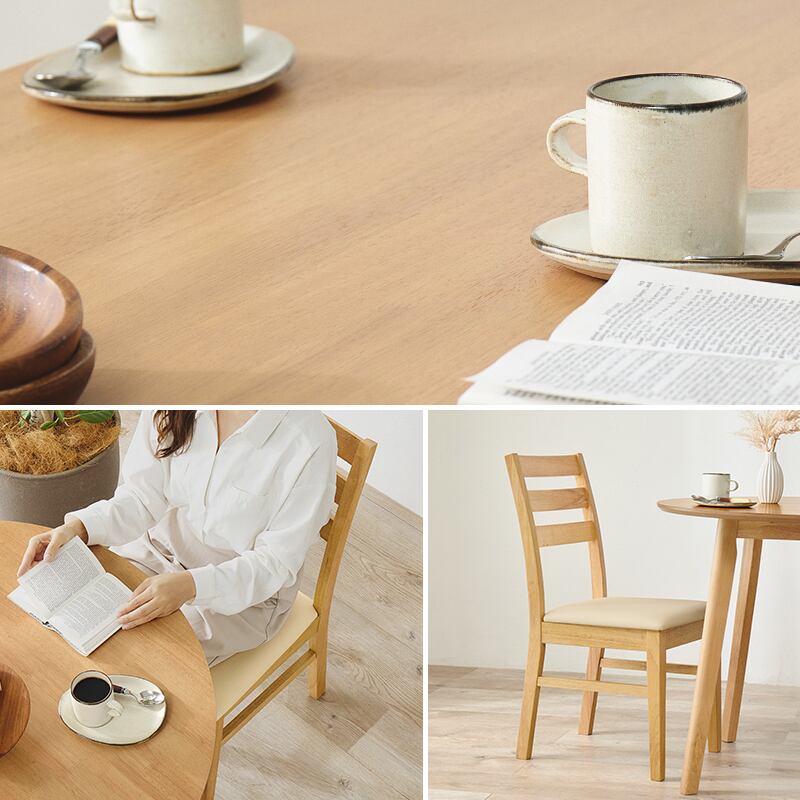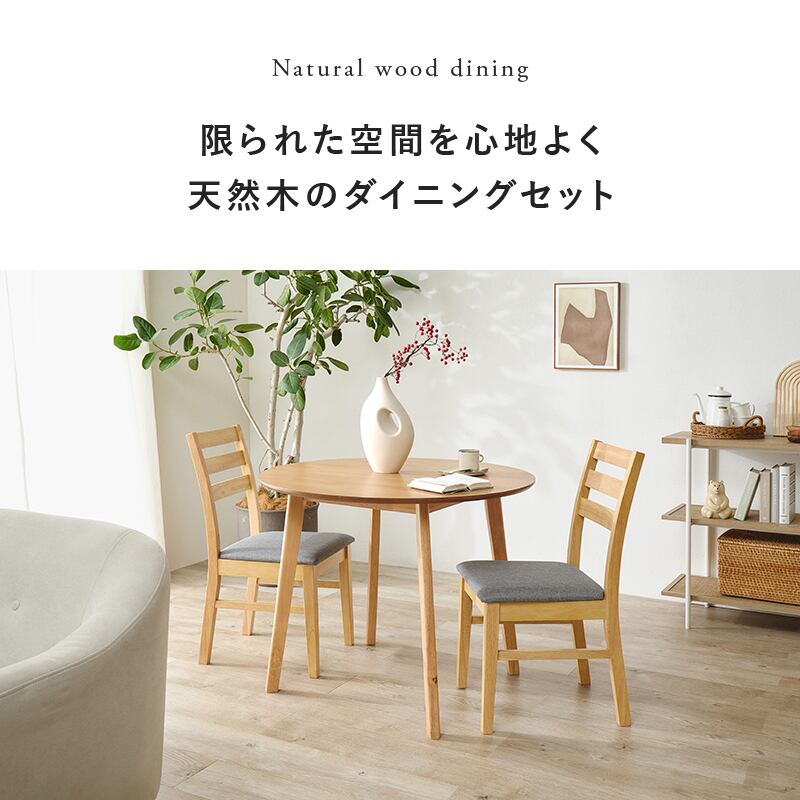 天然木の風合いが空間を心地よく彩るダイニングセット。円形のテーブルと、シンプルデザインのチェアです。