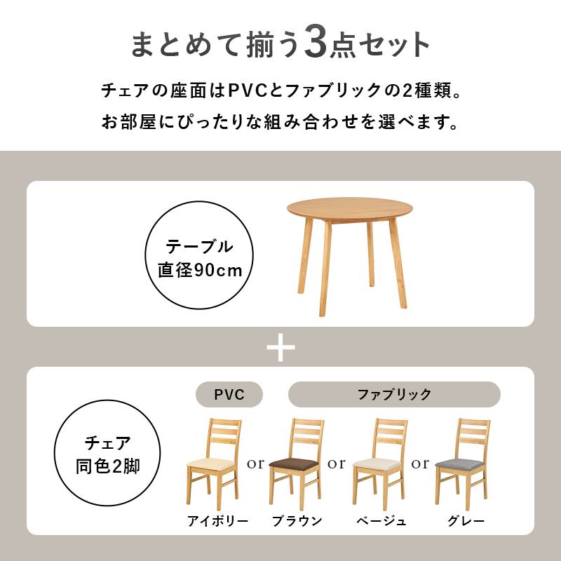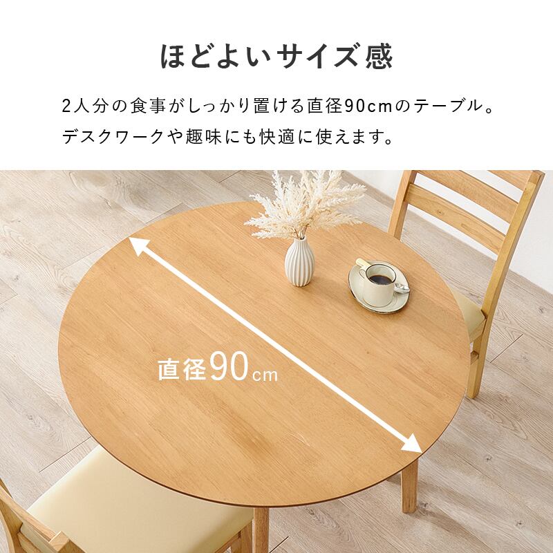 ダイニング3点セット SH-8640-8521-3S テーブル直径90cm ダイニングテーブル ダイニングチェア セット 天然木 ラバーウッド