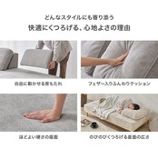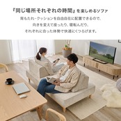 背もたれ、クッションを自由自在に配置できるアイランドソファ。向きを変えて座ったり、寝転んだり、生活スタイルや気分に合わせてくつろぎ方を変更できます。ロー/ハイ兼用