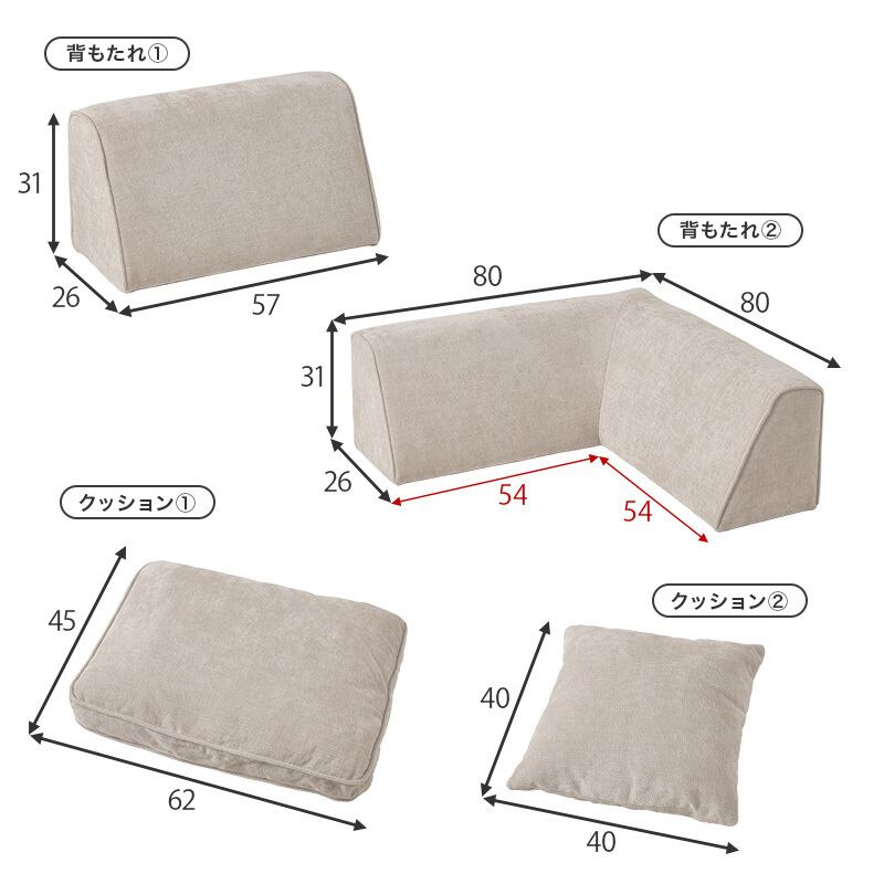 背もたれ②:(約)幅80×奥行80×高さ31cm