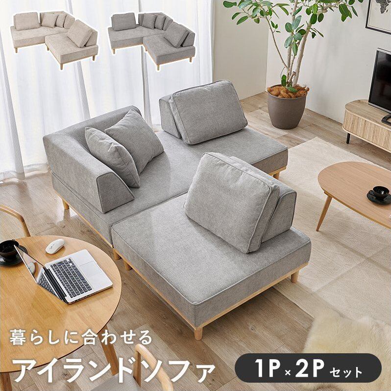 アイランドソファ 1P×2Pソファセット ユニオンS-21-4S 《開梱設置サービス付き》 背もたれ クッション 自由自在