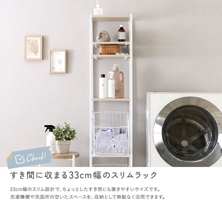 幅約33cmのスリムな設計に洗濯物とランドリー用品をまとめて収納できます!