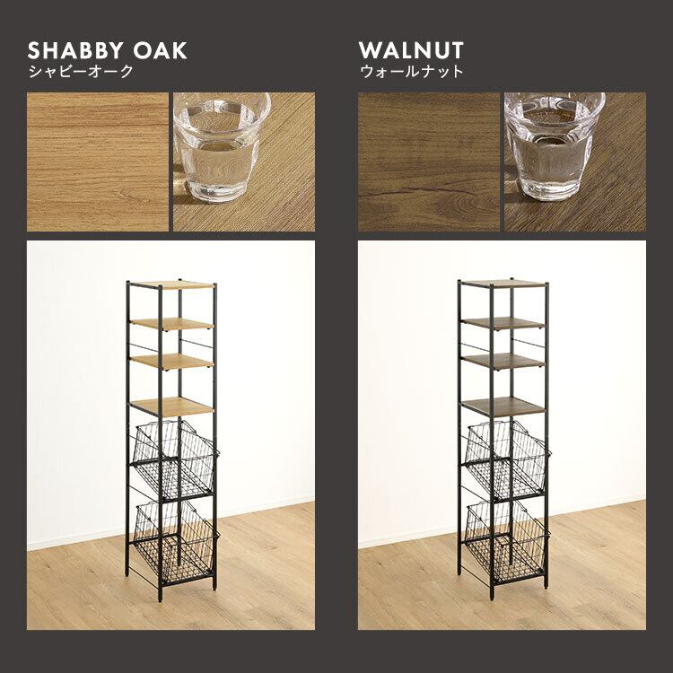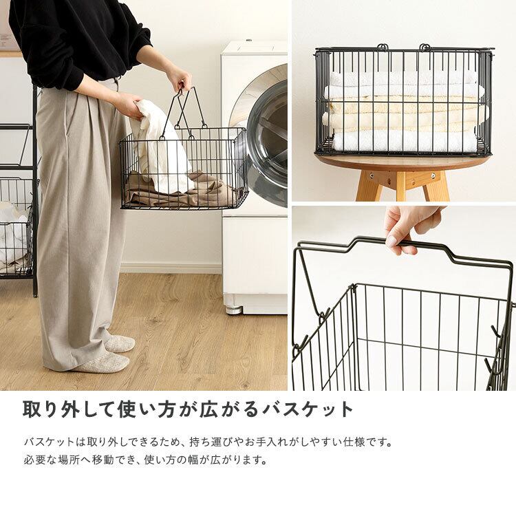 ヴィンテージ調 調節可能 カゴ付きランドリーラック VLRZ-2B 幅33cm ランドリーラック かご付き 頑丈設計 PVC アジャスター付き