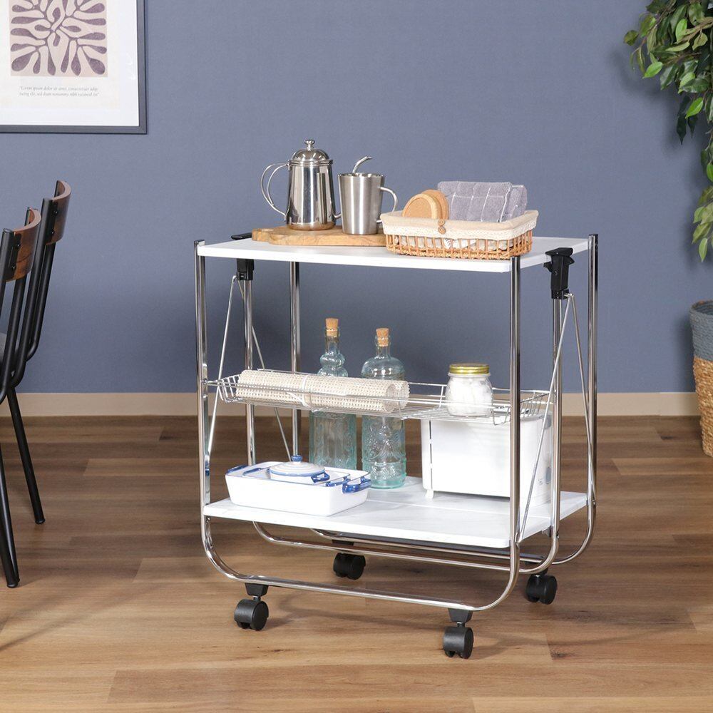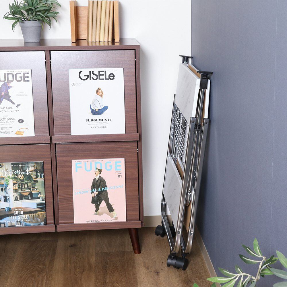 使うときだけで場所を取らない!大理石柄の折りたたみワゴン
