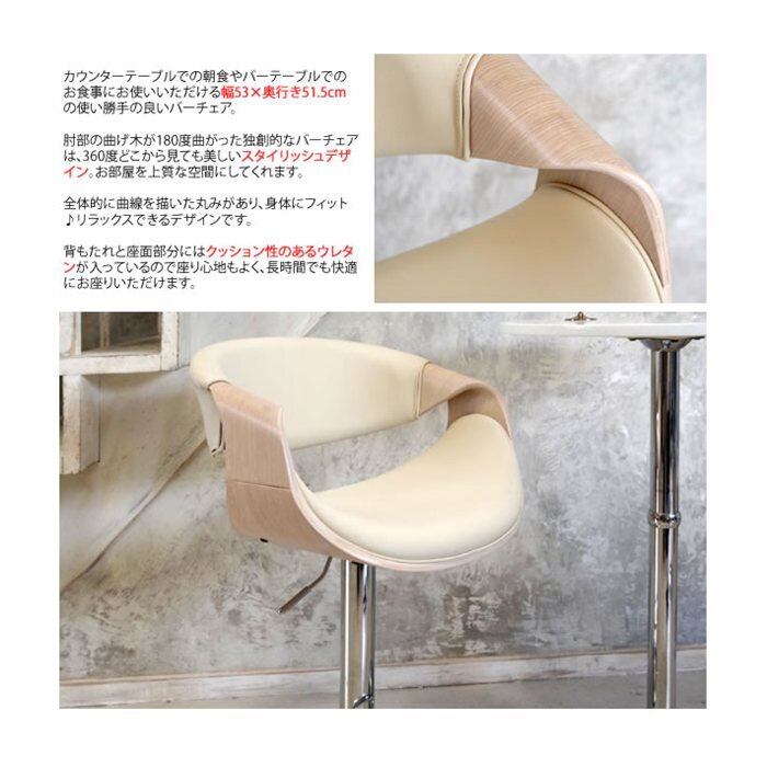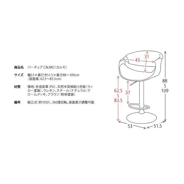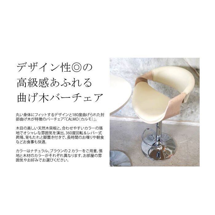 バーチェア CALMO(カルモ) KNC-J1996 カウンターチェア バーチェア 天然木突板 曲げ木 360度回転 レバー式昇降 脚置き付き 合成皮革