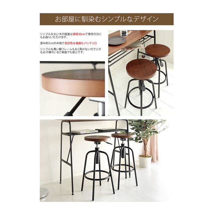 お部屋に馴染み見やすいシンプルデザインで、バーチェアやカウンターチェア、作業用スツールなどご自由にお使いください。