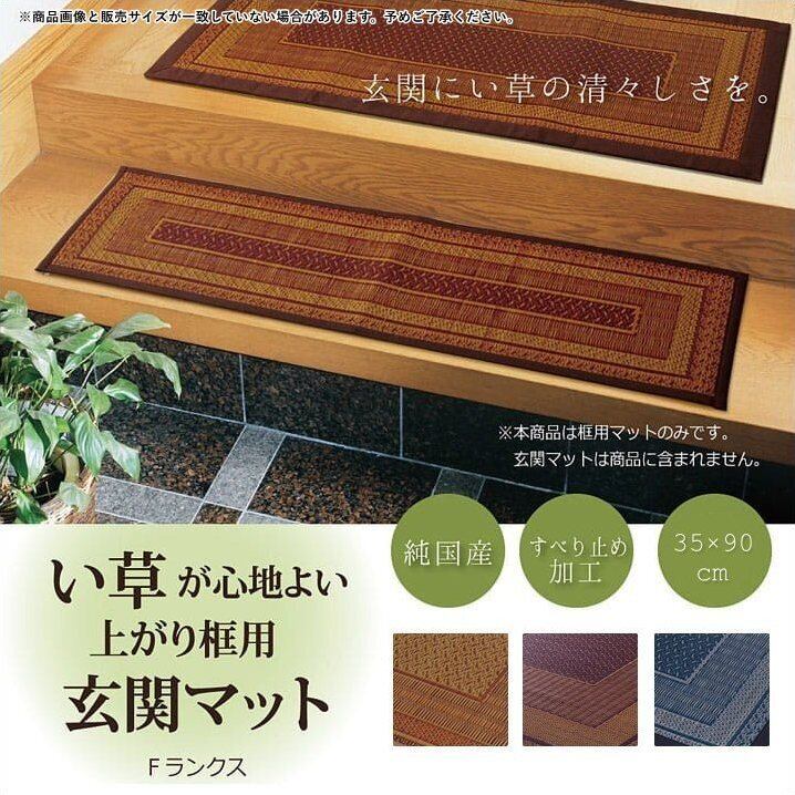 日本製い草上がり框(かまち)マット Fランクス 35×90cm モダン 滑りにくい お手入れ簡単 夏 抗菌防臭 調湿 消臭 空気清浄 汚れにくい