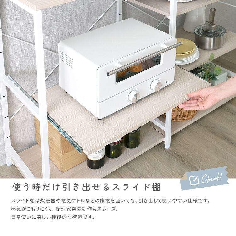 調節可能キッチンカウンター 幅120cm FKKZ-1240 カウンター キッチン収納 オープンラック スライドトレー付き 頑丈設計 アジャスター付き
