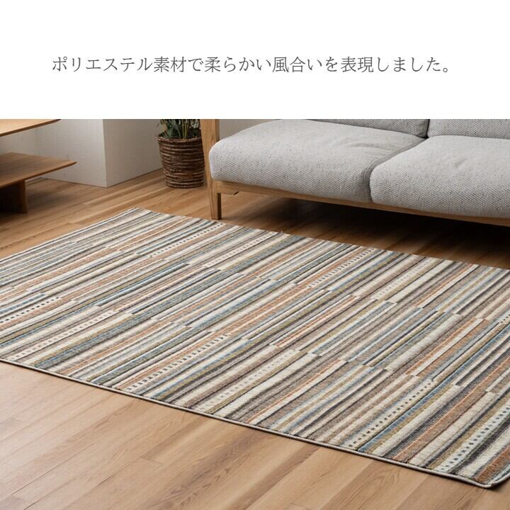 表情豊かなストライプ柄ウィルトンラグポリエステル素材で柔らかい風合いを表現しました。