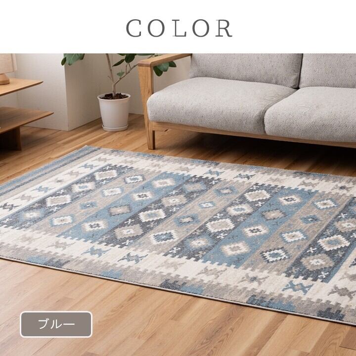 キリムデザインを現代的カラーに落とし込んだウィルトンラグキリム特有の幾何学模様を洗練された配色で表現しました。