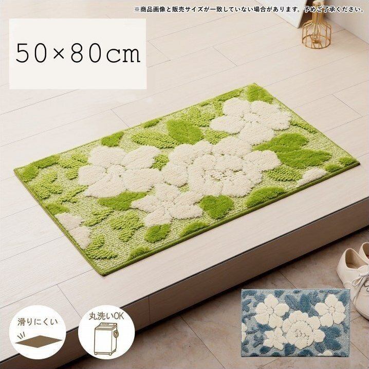 玄関マット メル 50×80cm マット 花柄 エレガンス ふかふか 滑り止め 洗濯可能 洗濯機丸洗いOK