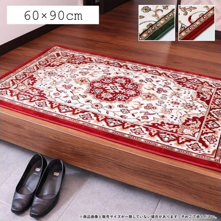 玄関マット メンデル 60×90cm マット あがり框 エレガント クラシック柄 高密度 滑り止め 洗濯可能 洗える