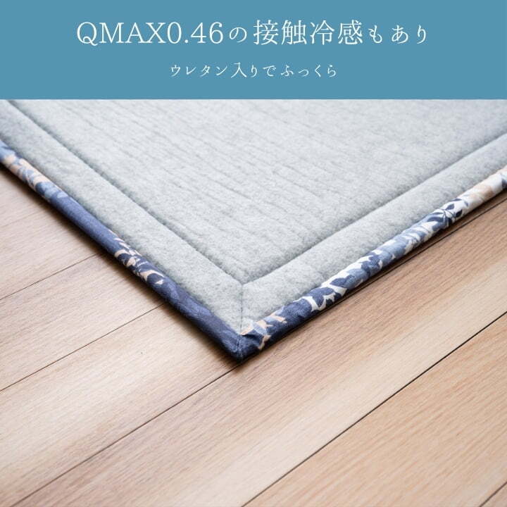 染料、薬剤などを使わない素材そのままのカーペット。Qmax0.46の接触冷感もあり。