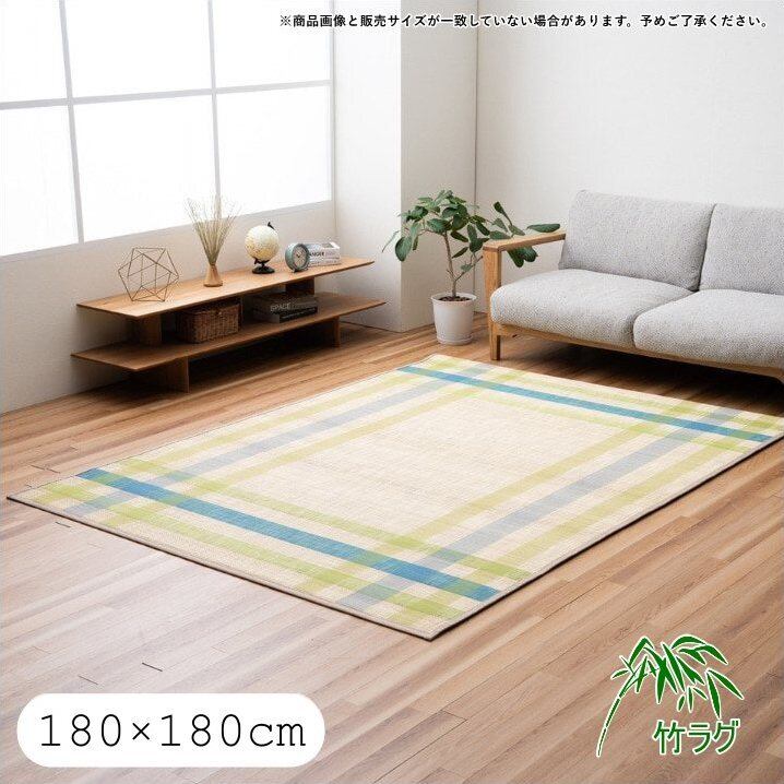 竹ラグ サワー 180×180cm 竹カーペット チェック柄 竹素材 竹ひご ウレタン