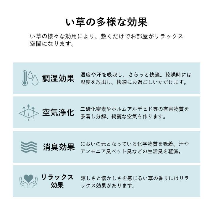 い草には空気の清浄作用、湿度の調整作用があり、汚れにくいといった特徴があります。