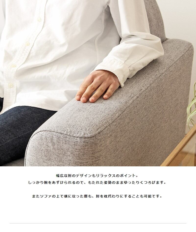 やや大きめサイズの2.5人掛けなので、ゆったり座れてリラックス感も満点。 ファブリックと天然木を組み合わせたあたたかみのある表情が、 安心感とぬくもりを与えてくれます。