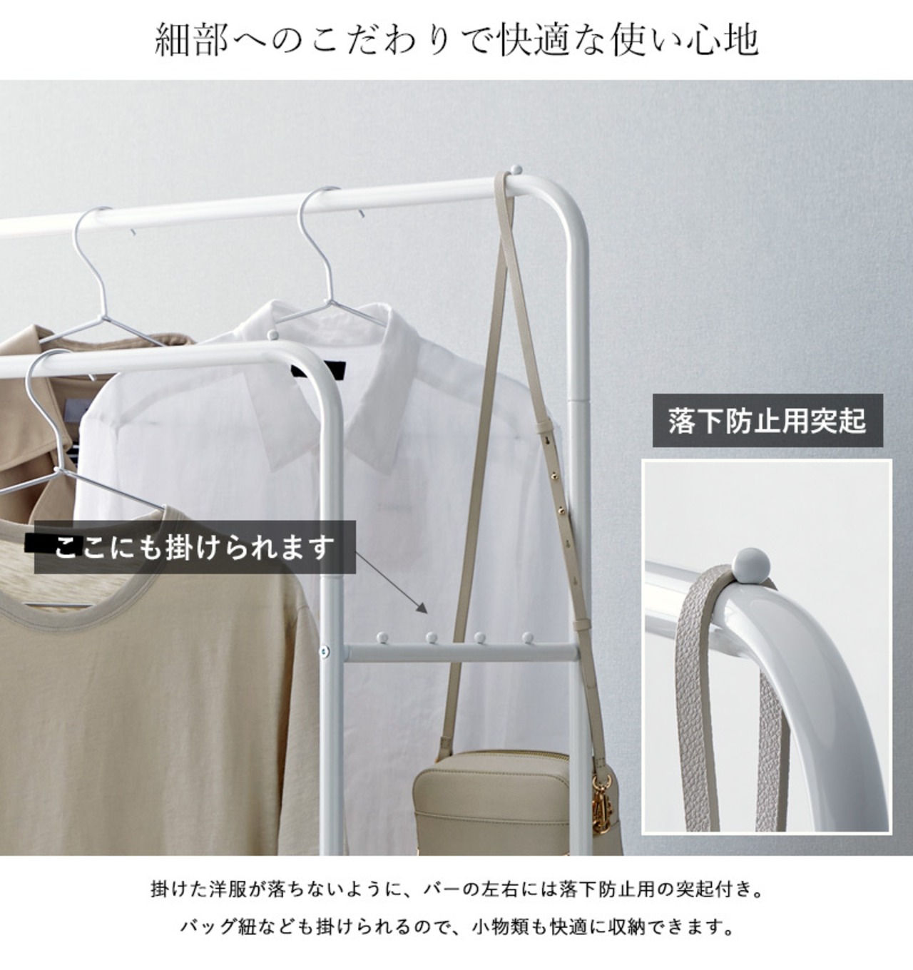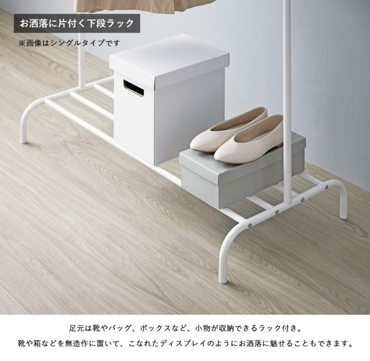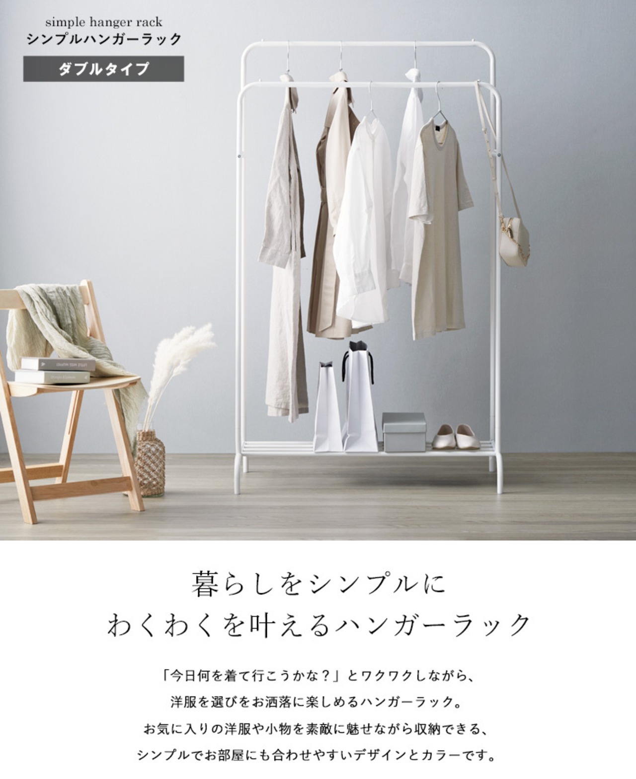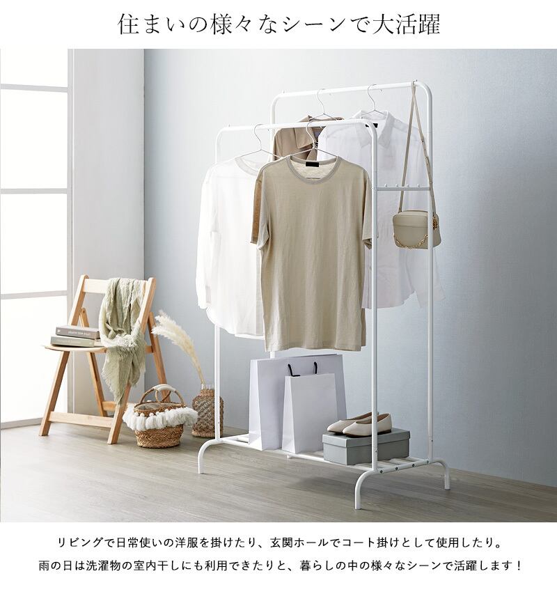抜け感のあるオープンフレームが圧迫感を抑え、収納した洋服をお洒落に引き立てる効果も期待できます。
