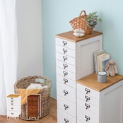 A4クリアファイルが入る、桐製の書類チェスト。引出しにはネーム入れがあるから、どこに何をしまったかひと目で分かります。