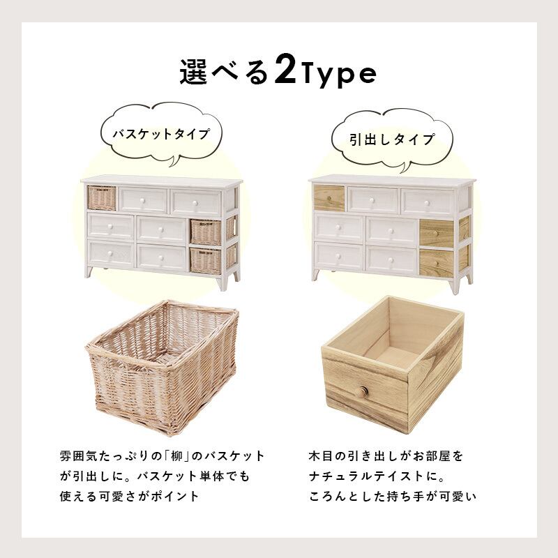 バスケットタイプとブラウンの引出しタイプの2種類をご用意。