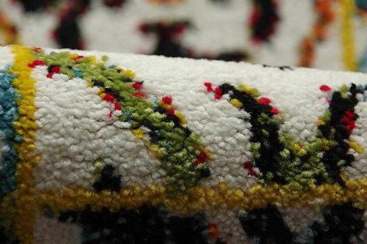 ウィルトン織りの玄関マットです。ラグでも人気の柄です。ウィルトン織りは非常に耐久性の高い織物です。家の中でも靴を履いて生活するヨーロッパで、土足で扱うことを前提として作られておりますので、長時間踏みつけてもヘタリにくく、弾力性もあり長くご使用頂けます。本商品の『繊維の密度を表すノット数』は112,000ノットです。本商品のパイル部分にはポリプロピレン素材を使用しております。ポリプロピレンはヘタリにくく、耐久性に優れ、繊維の中でも軽い素材です。また、汚れが付着しにくく、遊び毛や毛玉が非常に出にくいという特徴もあります。ホワイトをベースにカラフルな色で柄を出しています。玄関のワンポイントとして、ご使用していただきますと華やかになり高級感がでます。抗菌・防臭、消臭機能がついていますので、臭いが気になる玄関でも安心してお使いいただけると思います。