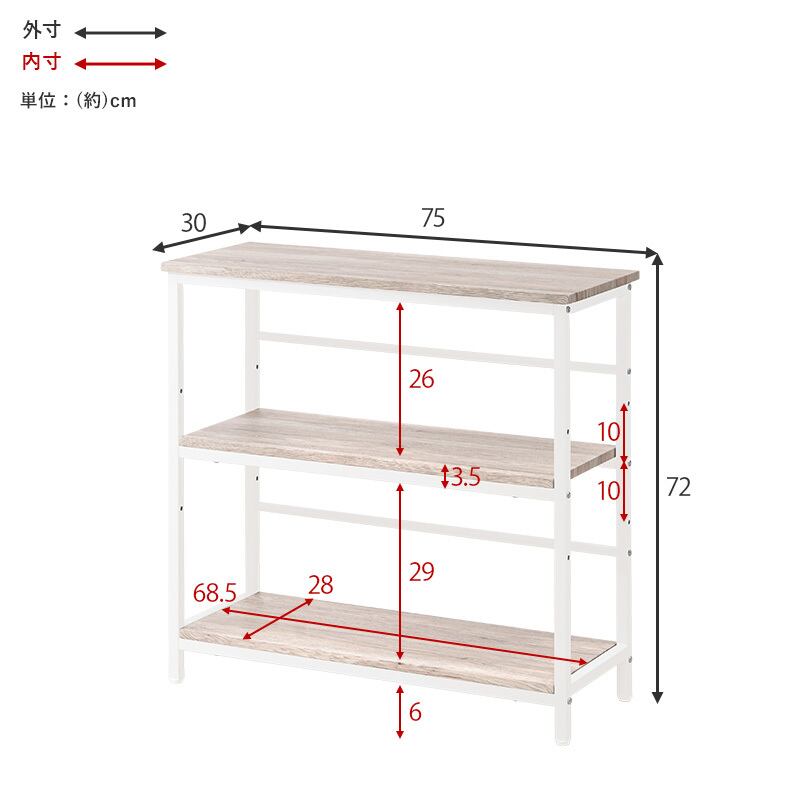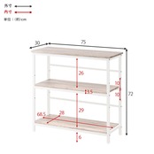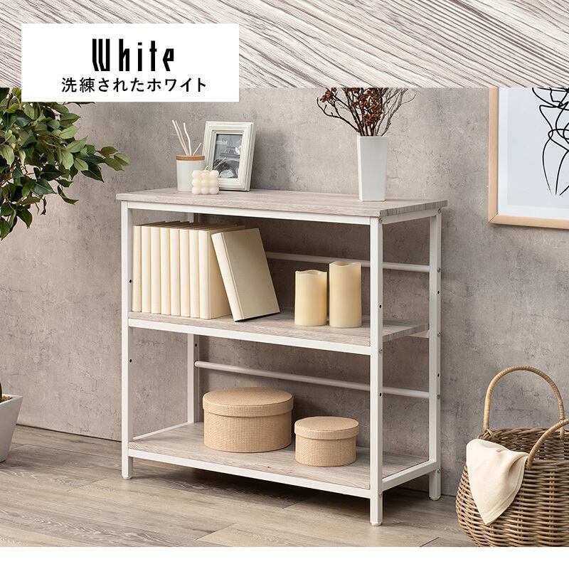 木目調の棚板にアイアンフレームを合わせたシンプルなデザインのオープンラック。3段タイプ