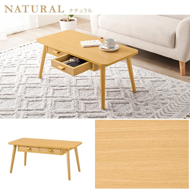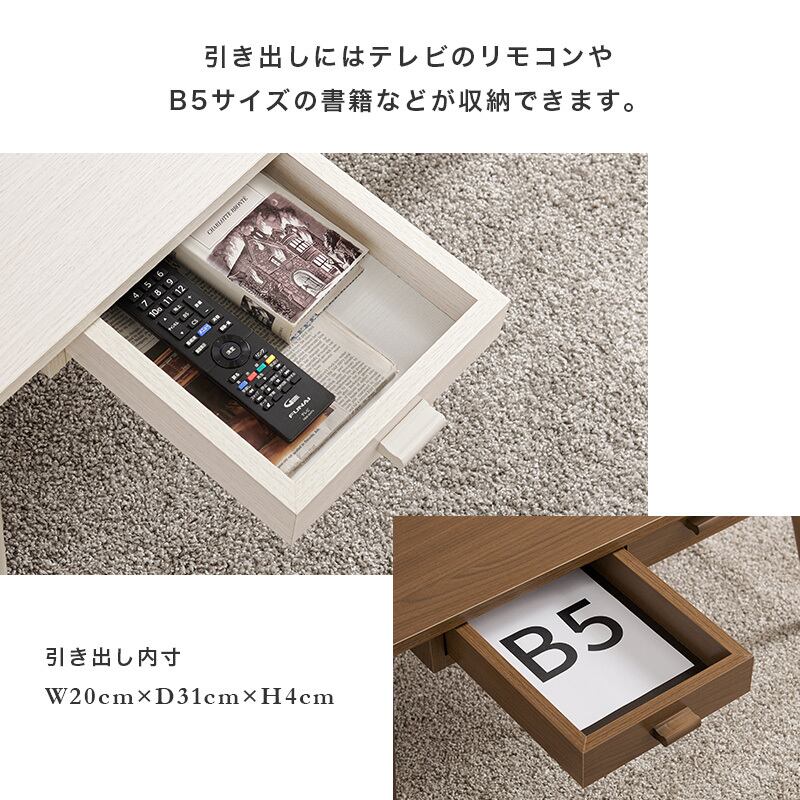 前後どちらからも収納できる両面引出付き。ワンルームにも置きやすいコンパクトサイズのセンターテーブルです。